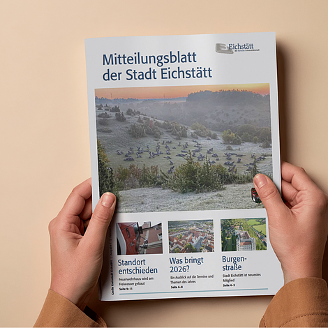 Eichstätt, die vielschichtige Altmühlstadt, macht ihrem Slogan alle Ehre. Wie eine Schatztruhe breitet sich die Stadt an den Windungen der Altmühl aus. Darin blitzen Kostbarkeiten wie berühmte Fossilien, die gebauten Kunstwerke des Barock oder der preisgekrönte Ideenreichtum moderner Architektur. Von Eichstätt aus entdeckt man den Naturpark Altmühltal aufs Schönste beim Wandern und Radfahren oder vom Fluss aus beim Bootwandern. Als Große Kreisstadt ist Eichstätt mit seinen knapp 14.000 Einwohnern Verwaltungssitz des nördlichsten Landkreises in Oberbayern.
