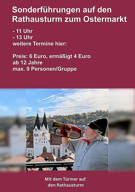 Am Ostermarkt in Eichstätt, Sonntag, 22.03., gibt es Sonderführungen unserer Türmer auf den Rathausturm. Es sind leider wenige Plätze frei. Es gibt keine Anmeldung. Nächster Termin mit…
