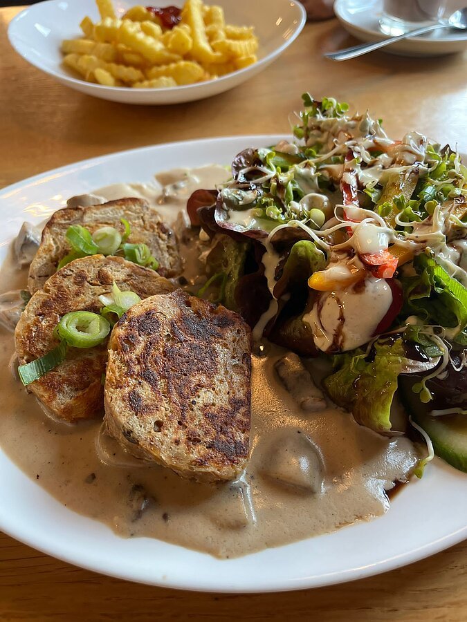 Serviettenknödel "Klassik" mit Rahmschwammerl und Salatbouquet