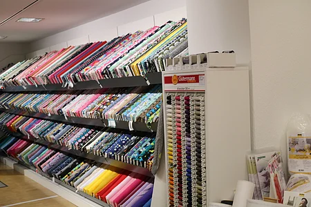 Der Stoffladen bietet eine große Vielfalt an Stoffen namhafter Hersteller in unterschiedlichen Ausführungen, auch in BIO Qualität (Jersey, Baumwolle, French Terry, Sweat, Musselin, Strick und vieles mehr). Bündchen in allerlei Farben warten ebenso auf unsere Kunden. Das passende Handwerkszeug wie Nähgarn, Rollschneider, Schneidematten, Lineale, Trickmarker, Nadeln und die altbekannte Schneiderkreide finden sich unter anderem in dem gut sortierten und durchdachten Zubehörsortiment. Unsere Nähfreunde können daher zu Hause sofort an ihrer Nähmaschine durchstarten.