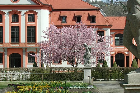 Die ehemalige fürstbischöfliche Sommerresidenz mit dem Hofgarten grenzt an die Vorlesungsgebäude der Katholischen Universität Eichstätt-Ingolstadt am östlichen Stadtrand.