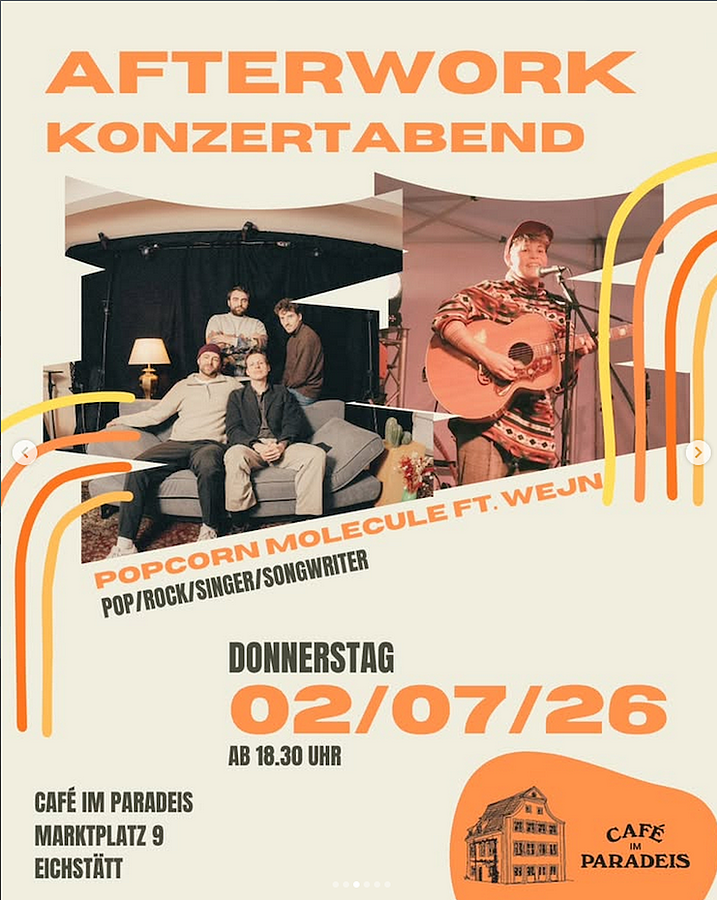 Auch in diesem Jahr wird es wieder an ausgewählten Donnerstagen parallel zu den Blasmusik-Frühschoppen am Samstag Afterwork Konzerte am Abend geben. Wie immer sind die Genres der Auftritte bunt gemischt, von swingendem Jazz, über Soul, Rock & Indie hin zu bayerischer Popmusik ist für jeden etwas dabei 🎶
