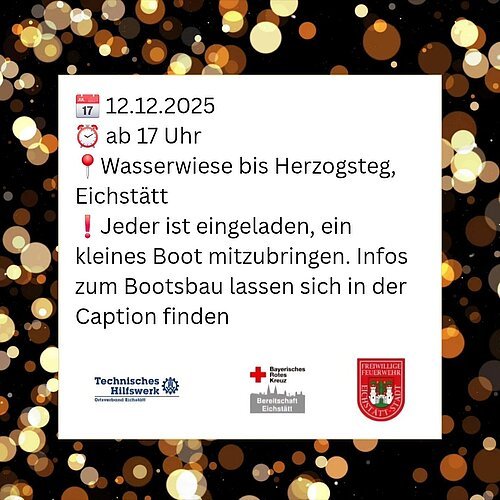 Kindergärten und Grundschulen können Boote basteln (mit Teelichtern) und diese am 12. Dezember an die Altmühl/Höhe Freibadbrücke bringen.