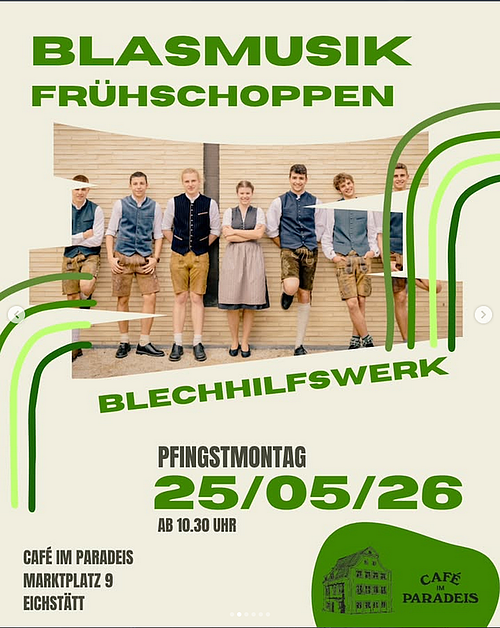 Der Sommer steht vor der Tür und damit beginnt bei uns auch wieder die Zeit der Blasmusik Frühschoppen. An fünf Vormittagen spielen wieder kleine Gruppen aus Eichstätt & der Region bei uns auf.