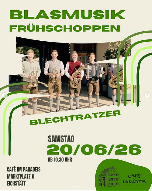 Der Sommer steht vor der Tür und damit beginnt bei uns auch wieder die Zeit der Blasmusik Frühschoppen. An fünf Vormittagen spielen wieder kleine Gruppen aus Eichstätt & der Region bei uns auf.