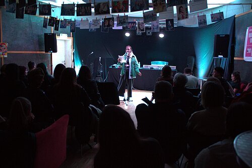 Bei der offenen Bühne wird Mädchen und Frauen, die sonst meist auf den Bühnen der Welt eher unterrepräsentiert sind, eine Auftrittsmöglichkeit geboten. Jeder Act dauert maximal 15 Minuten, wobei die verschiedensten Auftritte in kleinem Rahmen möglich sind wie z.B. Poetry, Akrobatik, Tanz, Musik, Kunst, Theater etc.