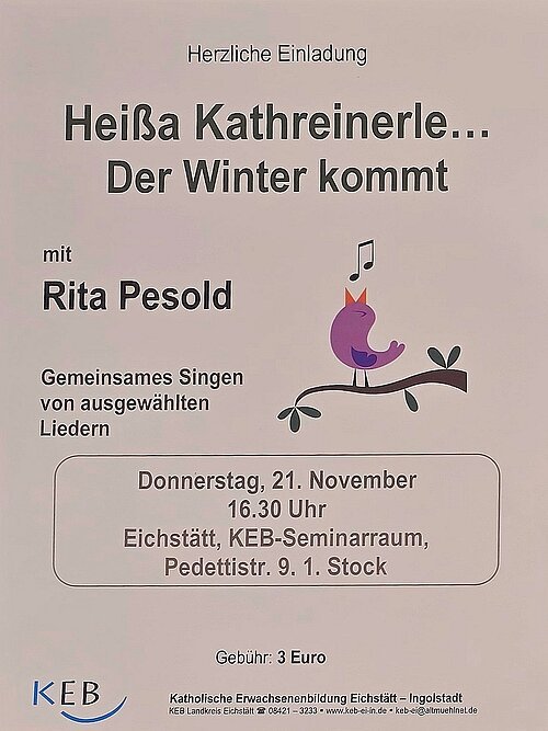 Gemeinsames Singen von ausgewählten Liedern mit Rita Pesold