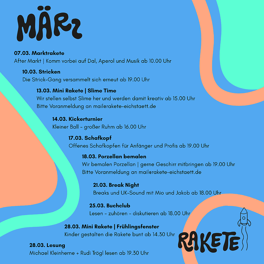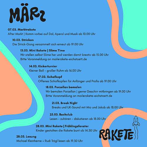 Auch im März gibt es in der RAKETE wieder ein vielfältiges Programm für Groß und Klein.