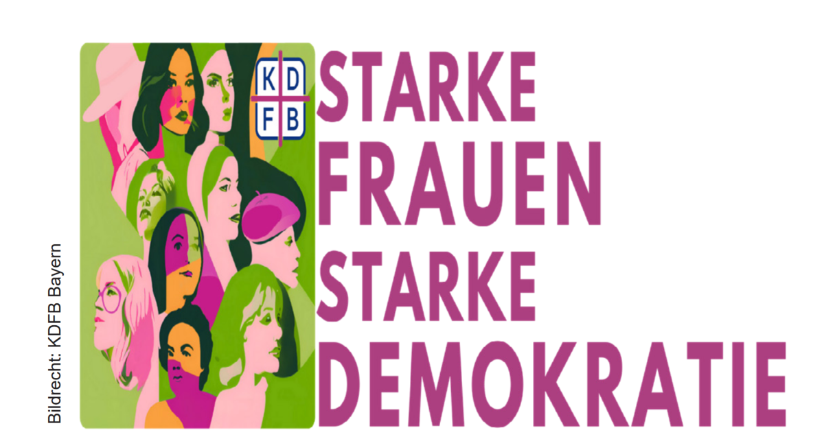 „Starke Frauen – Starke Demokratie“ – unter diesem Motto hat der Landesverband Bayern des Katholischen Deutschen Frauenbunds eine gleichnamige Kampagne ins Leben gerufen. Denn Demokratie braucht alle Geschlechter. In Kooperation mit „Mensch in Bewegung“ lädt der KDFB Diözesanverband Eichstätt zu einer Podiumsdiskussion mit Kommunalpolitikerinnen demokratischer Parteien sowie mit Prof. Dr. Rowena Roppelt, stellv. Gleichstellungsbeauftragte der KU Eichstätt, und „Demokratie leben!“ ein. Diskutiert werden die oft verkannte Relevanz von Frauen auf kommunalpolitischer Ebene, ihre Bedeutung im demokratischen Diskurs, aber auch die Hürden, vor denen Kommunalpolitikerinnen stehen. Im Anschluss findet ein Austausch über die Thematik statt.